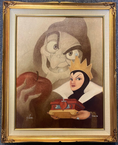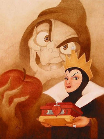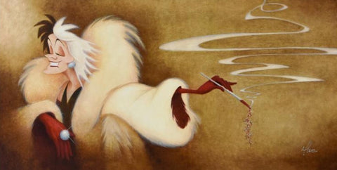 Even at the young age of 32, Michael's artwork captures more than a likeness of the characters he paints, his work creates old world flair. Bringing together all the ingredients necessary to make a painting work, which is why he attracts the eye. With the soft lines and rustic palate, The villains he depicts have always shown a greater range of emotions whether Captain Hook's eyes are boaring into you sizing you up or Cruella dreaming about the newest batch of puppies for her next fur coat. One thing is for sure you know that the characters he renders are so glad to be bad.