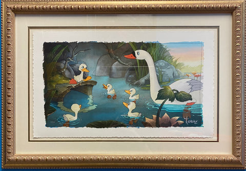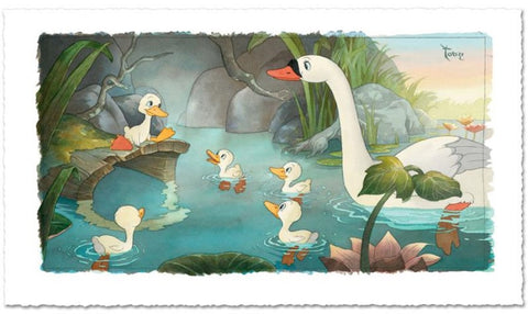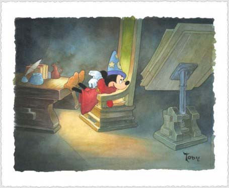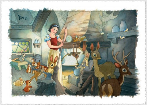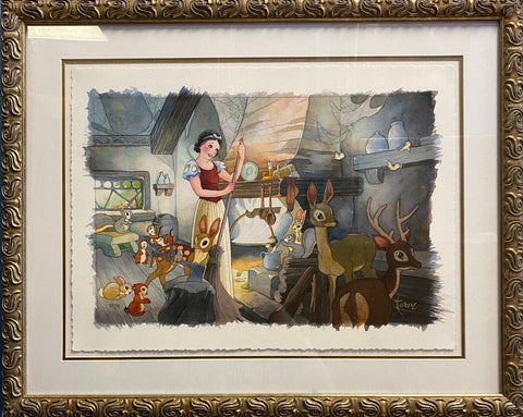 Just as those five films marked Walt's grand entrance into feature length storytelling they, quite appropriately, set the stage for the first five limited edition giclée's in Bluth's Disney Fine Art portfolio. Infused with all the depth, texture and richness of Toby's original watercolors these fine prints will be enjoyed for generations, very much in the spirit of the timeless classics that inspired them.