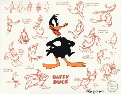 Daffy Duck Model Sheet - By Clampett Studios - Limited Edition Hand-Painted Cel