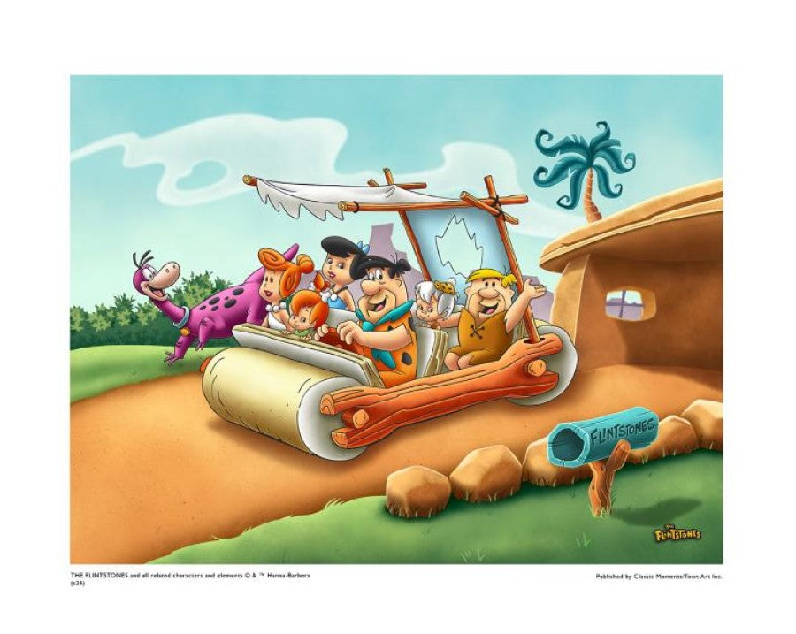 "Classic Car" is a licensed limited edition giclee on paper featuring classic Hanna-Barbera characters from The Flintstones. It comes numbered, with hologram seal, and a Certificate of Authenticity!