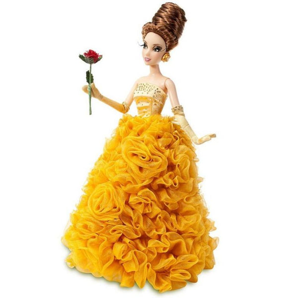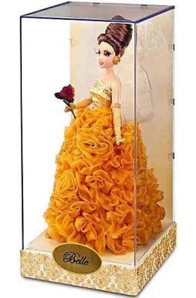 The first collection of Disney Exclusive Designer Princess Dolls. Belle is 12”, adorned in stunning gold - rose earrings, ruffled dress decorated with rhinestones. She’s enclosed in a 15” display case - looking sophisticated with her lashes and up-do! She’s never been opened or removed from hard case! Comes with original cover with Disney sketch art on back.
