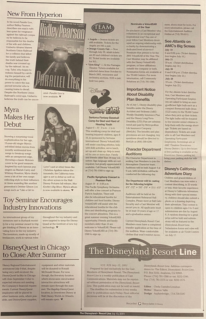 Disneyland Line July 13, 2001 Vol 33 No 28 Cast Member Magazine