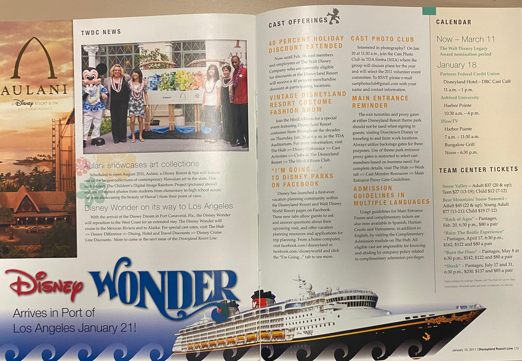 Disneyland Line Magazine January 2011 Cast Member Publication Under Construction
