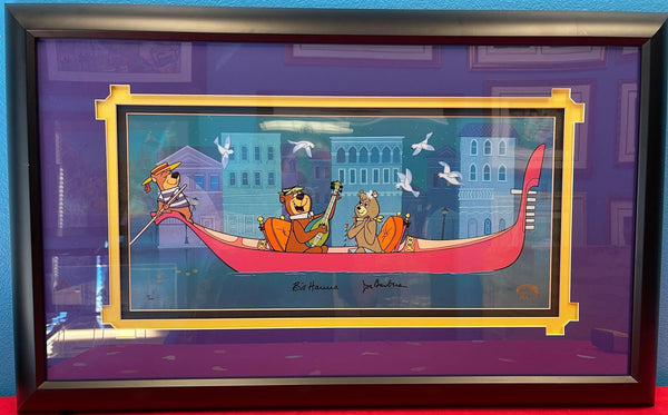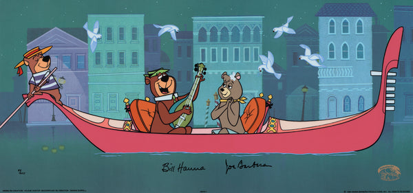 Taken from the animated feature of the same name, the scene depicted here from the 1964 release, shows a romantic side of Yogi as he serenades Cindy with Boo-Boo at the gondola’s helm.