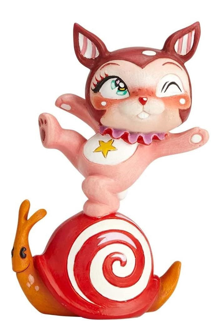 The World of Miss Mindy combines mythical characters with the unique design twists of its eponymous artist. Her cartoon folk art style puts a fresh, whimsical bent on childhood fantasies, painting timeless themes in a modern light. Bunny Love gives a cheeky wink as she kicks a leg up in the air, singing and dancing the day away with nary a thought or care. This colorful 4.12” stone resin design shows the lively bunny atop a happy snail, handcrafted hand-painted for a lifetime of frolicsome fun.