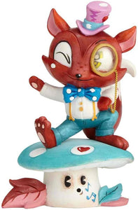 The World of Miss Mindy combines mythical characters with the unique design twists of its eponymous artist. Her cartoon folk art style puts a fresh, whimsical bent on childhood fantasies, painting timeless themes in a modern light. Mr. Fox just loves to play, sing, dance, and flaunt his tail. He grooves the day away. This 4.12” handcrafted design shows the lively character atop a colorful mushroom, sculpted from high-quality stone resin and hand-painted for a lifetime of frolicsome fun.