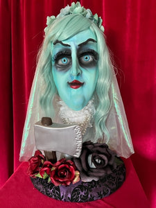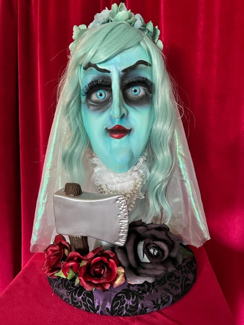 Unveil the dark allure of Disney's Haunted Mansion with "Constance Hatchaway: The Black Widow Bride," a meticulously hand-sculpted and painted bust. This custom caricature sculpture immortalizes the most villainous presence within the iconic attraction. Known for her murderous past life, Constance Hatchaway, or The Black Widow Bride, stands as a captivating figure in the ghostly ensemble of Disneyland in California and Walt Disney World in Florida.