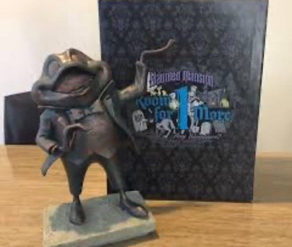 Discover a unique piece of Disney memorabilia with "The Haunted Mansion Mr. Toad in the Pet Cemetery Statue," a limited edition collectible given exclusively to attendees of the "Room for One More" event at Walt Disney World. This exquisite statue, standing at 13 inches in height and limited to just 500 pieces, is a must-have for Disney collectors and fans of the Haunted Mansion.