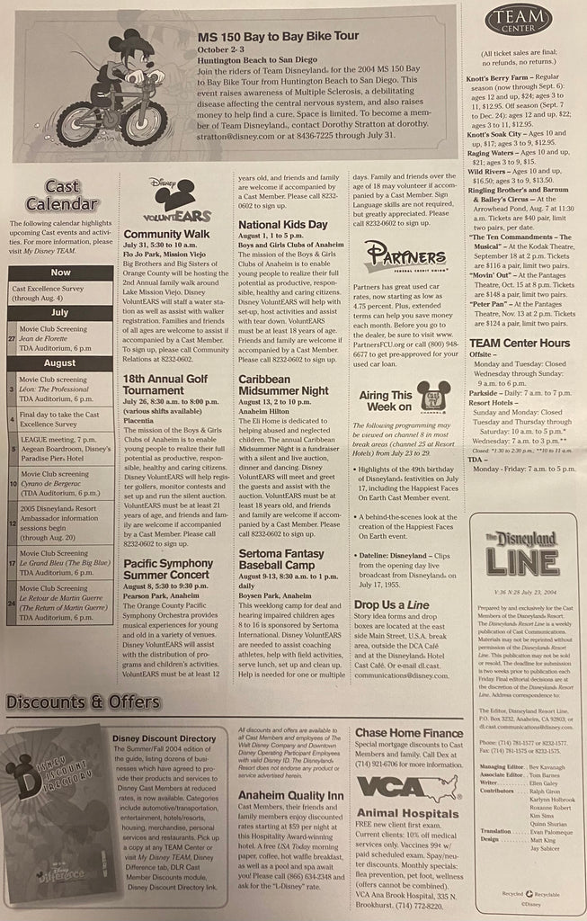 Disneyland Line July 23, 2004 Vol 36 No 28 Cast Member Newspaper Kim Irvine