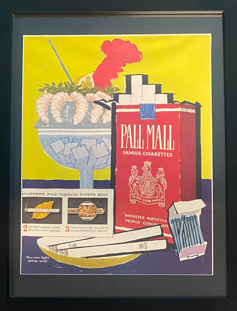 Vintage 1950s Mary Blair Designed Pall Mall Cigarette Framed Magazine Ad