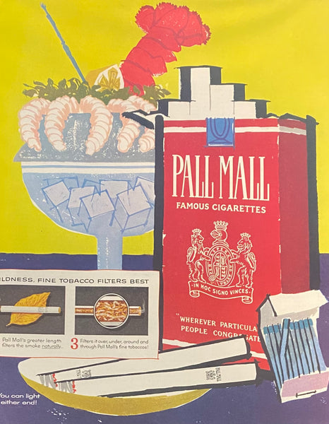 • Design by Mary Blair: Celebrated for her whimsical and vibrant style, Mary Blair’s work brings a unique and artistic flair to this Pall Mall cigarette advertisement.