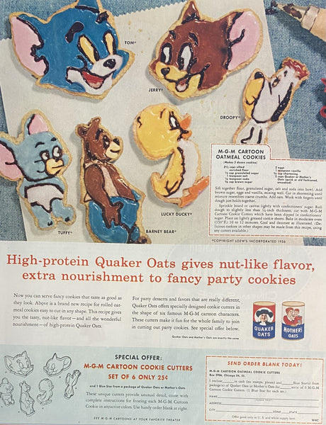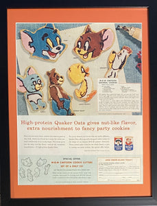 Vintage 1956 Tom and Jerry Quaker Oats Cookie Framed Magazine Ad
