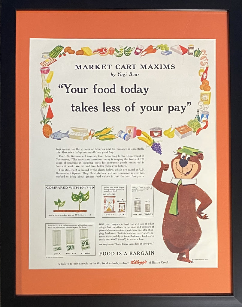 Vintage 1962 Yogi-Bear Market Cart Maxims Framed Magazine Ad