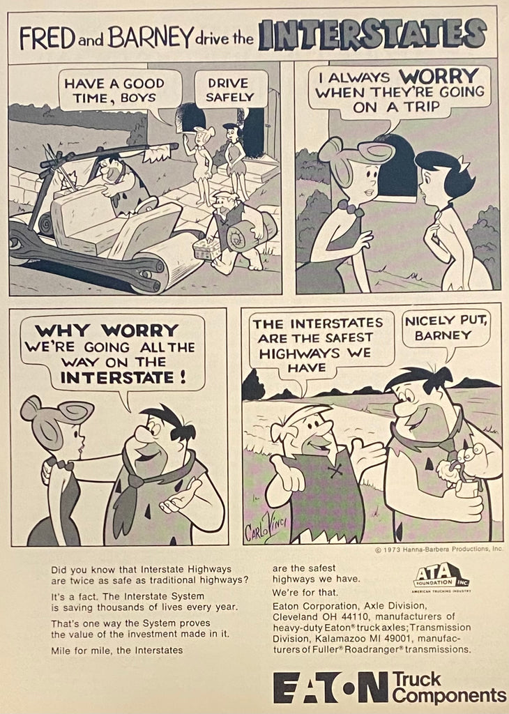 Vintage 1973 The Flintstones Eaton Truck Components Framed Magazine Ad